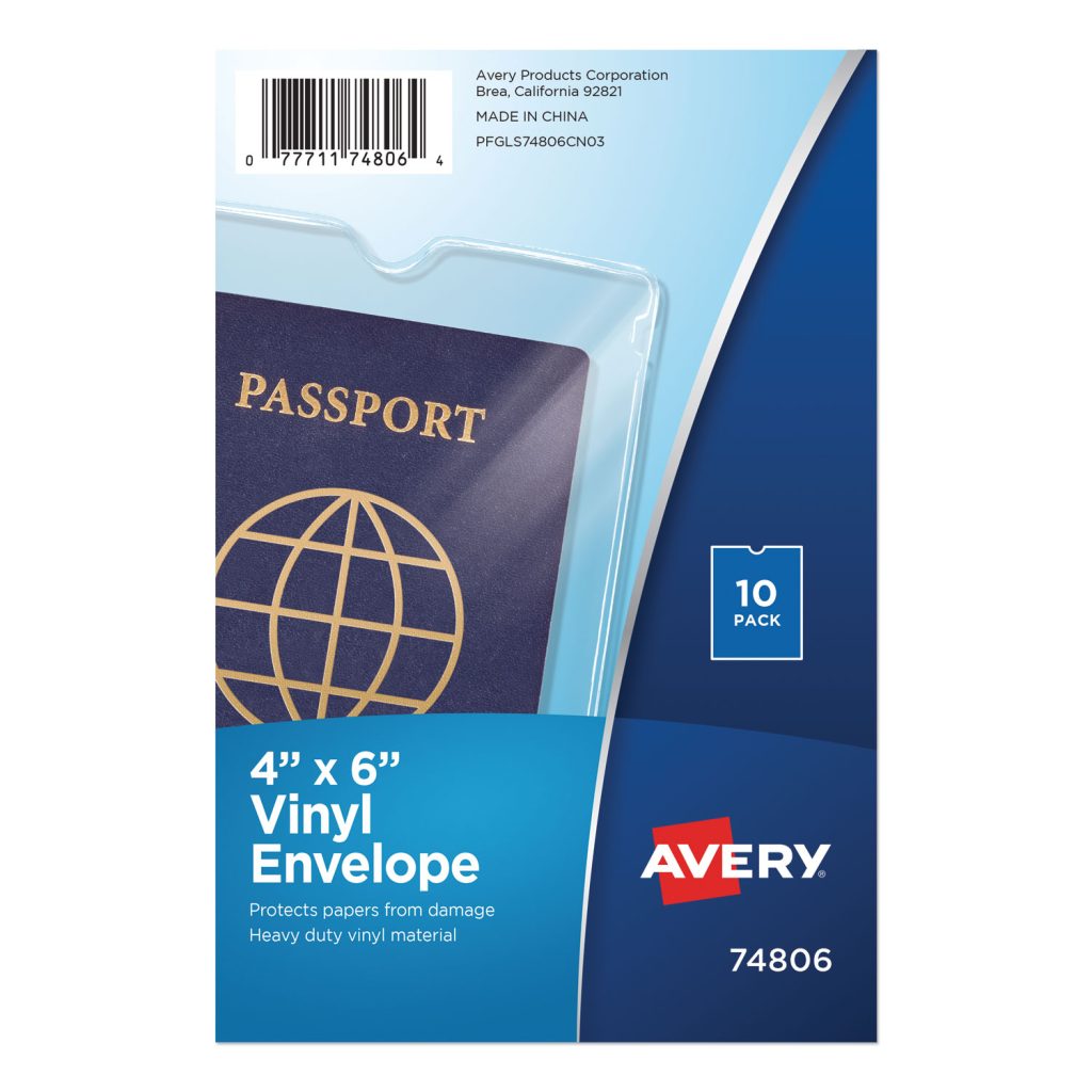 Keep important documents safe and organized with these handy vinyl envelopes. Crystal clear heavyweight vinyl offers protection against tearing, water damage and more and allows you to view the contents with a glance. Each envelope is sealed on three sides and features a convenient notch at the top to aid in loading and removal. Use the 4″ x 6″ envelopes to slip in your passport, tickets and other loose items you don’t want to lose or damage; 9″ x 12″ holds up to 60 pages of 8 1/2″ x 11″ sheets. With these sturdy envelopes, your valuable items are protected both on the go and in storage. Vinyl material may lift print.