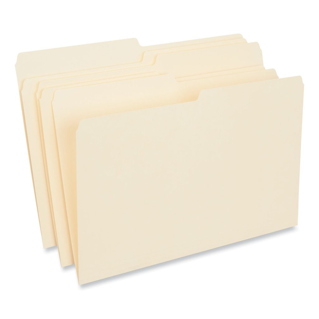 Top Tab Manila File Folders, 1/2-Cut Tabs: Assorted, Legal Size, 0.75″ Expansion, Manila, 100/Box