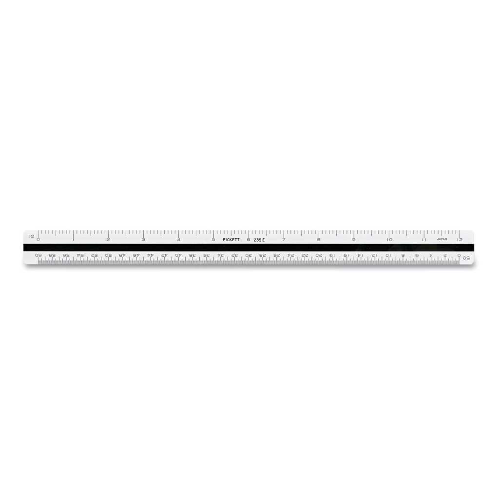 The color coded center groove easily identifies scale graduations. Measurements are precision-etched into a durable laminated plastic for accuracy. Comes in a protective case. Engineering ScalesColor coded, 10; 20; 30; 40; 50; 60 parts per inch. Ruler Type: Triangular Scale; Length: 12″; Standard Scale: 10″; 20″; 30″; 40″; 50″; 60″; Material(s): Plastic.