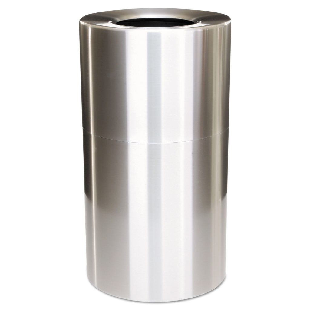 Two-Piece Open Top Indoor Receptacle, Round, Satin Aluminum, 35gal