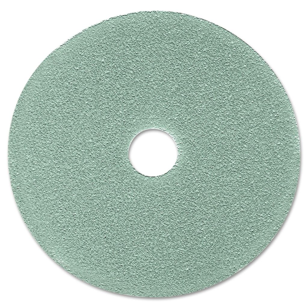 The 3M Aqua Burnish Pad 3100 produces a high gloss on softer finishes while minimizing high-point burning and finish removal. This fine burnish pad is designed for use with ultra-high-speed (1500-3000 rpm) electric, battery, and propane burnishers. Conformable polyester fibers maximize pad-to-floor contact. Uniform distribution of resin throughout the floor pad translates into impressive performance over a long pad life. The open-web construction resists clogging and enables easy washing and reuse. Application: Burnishing; Diameter: 19″; Color(s): Aqua; Color Family: Blue.