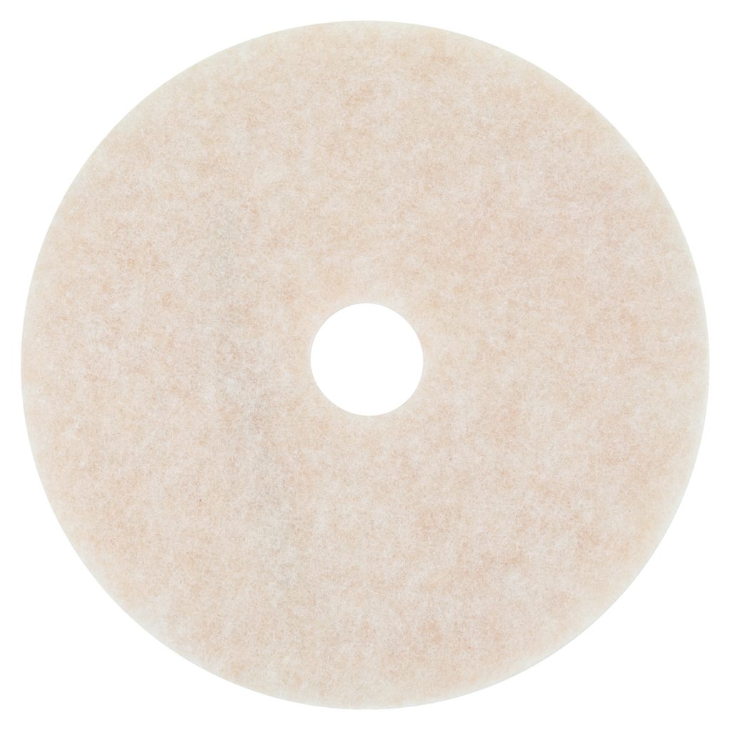 The 3M TopLine Speed Burnish Pad 3200 restores gloss to dull floors in a single pass on a wide variety of floor finishes. The pad is for use on ultra-high speed burnishers that operate at 1500-3000 rpm. High quality synthetic fibers are coated throughout the pad with a durable resin, providing good performance throughout the life of the pad. The open construction resists clogging and washes out easily for reuse. Conformable fibers provide maximum pad-to-floor contact. Pad is reversible. For use with any ultra-high speed (1500 rpm or greater) cord-electric, battery-electric, or propane floor machine. Application: Burnishing; Diameter: 20″; Height: 1″; Color(s): White/Amber.