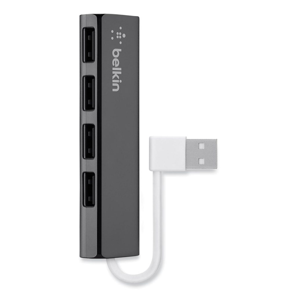 The 4-Port Ultra-Slim Travel Hub adds four quick- access USB ports to your PC, Mac, laptop, or tabletideal for connecting a keyboard, mouse, thumb drive, charging cable, or any other USB-enabled device. Number of Ports: 4; For Use With: Laptop; USB Enabled Devices; Width: 0.75″; Depth: 1.1″.