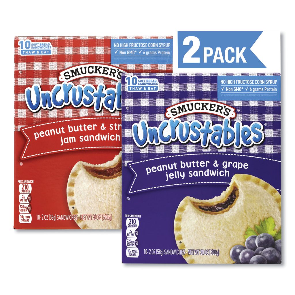 UNCRUSTABLES Soft Bread Sandwiches, Grape/Strawberry, 2 oz, 10 Sandwiches/Pack, 2 PK/Box