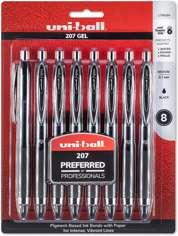 uni-ball 207 Retractable Gel Pens, Medium Point, 0.7mm, Black, 8 Count