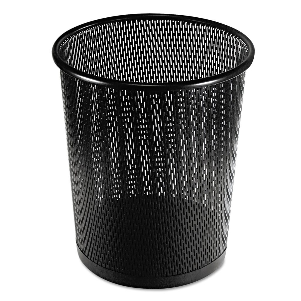 Strong, professional grade punched metal with decorative urban style slotted pattern. High quality satin finish complements any dcor. Features protective feet to prevent surface wear and scratches on the desktop surface. Reinforced rounded edges provide durability and attractive detailing. Wastebin conveniently sized for office or home use. Accommodates most standard 9″ small garbage bags. Waste Receptacle Type: Deskside All-Purpose Wastebasket; Material(s): Perforated Steel; Application: Office Waste Disposal; Capacity (Volume): 20.24 oz.