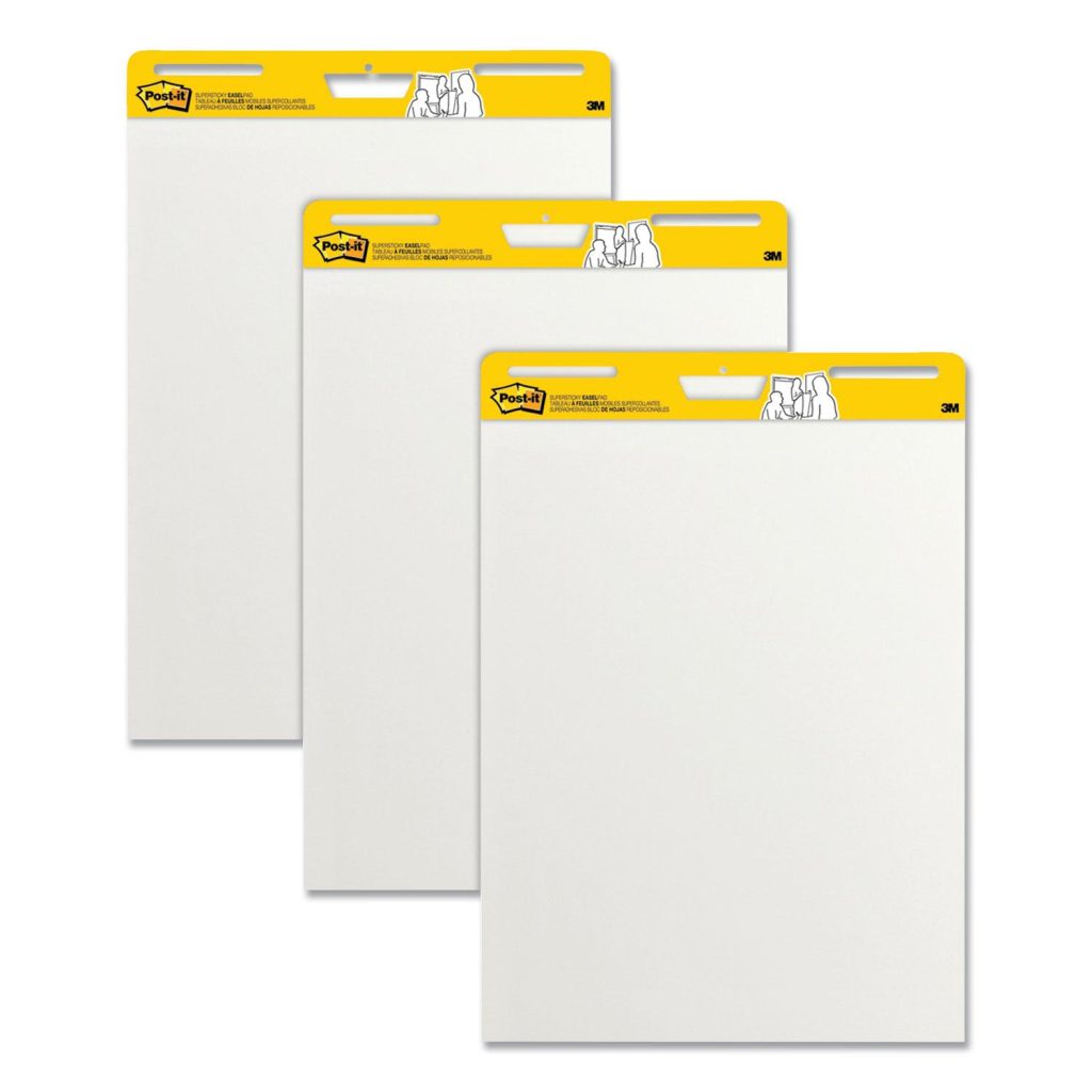 Use Post-it Easel Pads to capture and share ideas. With sheets that can stick almost anywhere, Post-it Easel Pads foster the imaginative thinking that lays the foundation for future growth. So when you want to successfully plan, collaborate, and capture and build on ideas, they’re ready to help you succeed. Post-it Easel Pad sheets feature premium paper that resists marker bleed-through; they stick to most surfaces and can be repositioned again and again, without surface damage. The sturdy backcard features a handle for easy portability and universal slots to fit most easel stands. Vertical-Orientation. Pocket-Sized Indicator: N; Pad-Binding Type: Stapled; Pad-Binding Edge: Top; Number of Subjects/Sections: 1.