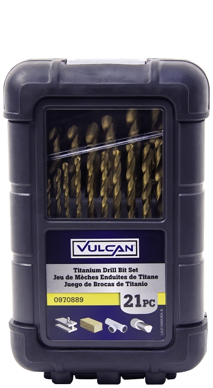 Vulcan 211990OR Drill Bit Set, 21-Piece, High Speed Steel/Titanium Nitride, Bright Yellow SKU V012-67936 MPN 211990OR Add to Cart Add Tough plastic case with rubberized grip panels Specifications Manufacturer VULCAN