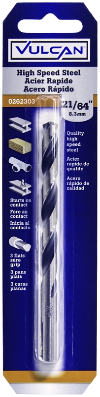 Vulcan 231911OR Jobber Drill Bit, 21/64 in Dia, 4-5/8 in OAL, 3-Flat Shank