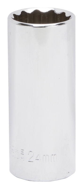 Vulcan MT6528985 Drive Socket, 24 mm Socket, 1/2 in Drive, 12-Point, Chrome Vanadium Steel, Chrome