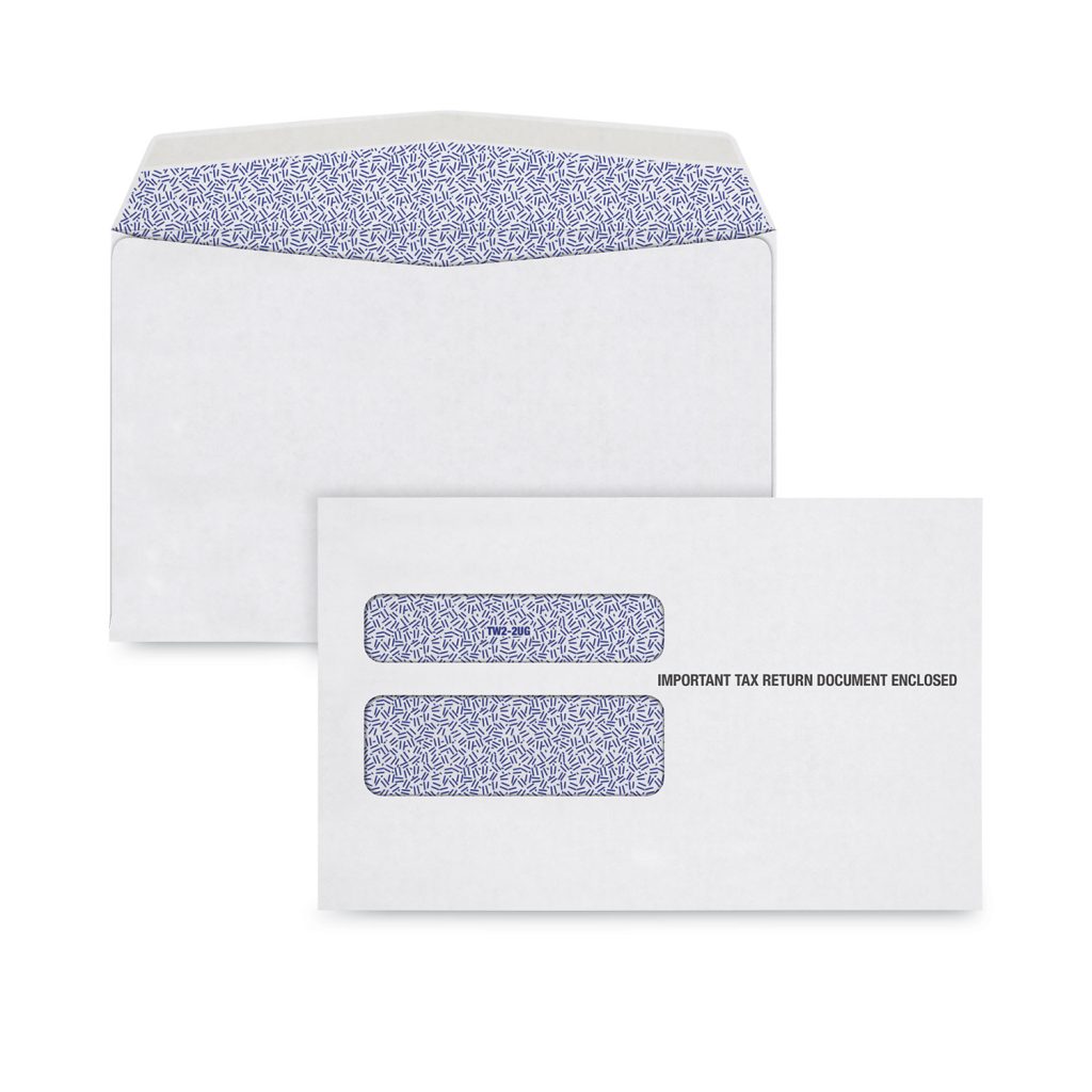 TOPS W-2 Envelopes fit your W-2 forms for the Social Security Administration. TOPS tax envelopes have a security tint and pattern to obscure confidential information. Double windows fit W-2 forms precisely so private information stays concealed. A peel & seal closure saves you time. Preprinted with “Important Tax Return Document Enclosed.” Seam Type: Side; Flap Type: Commercial; Security Tinted: Yes; Opening: Open Side.