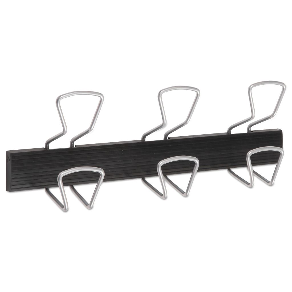 Wall mounted coat peg for all types of garments or accessories. Kind to clothes thanks to the rounded metal hooks. A stylish design that blends into any office environment. Elegant with the combination of metal and plastic. Sturdy structure. Easy to fix with only two screws and dowels (included). Hanger/Hook Type: Hook; Width: 18.11″; Depth: 2.95″; Height: 6.45″.