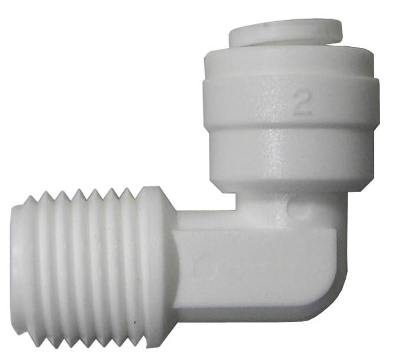 This 1/4 in x 1/8 in MIP quick-connect elbow works with copper, CPVC, PEX, LPDE, MPDE, HDPE and polybutylene tubings. It is easy-to-install, no tools or tube inserts are required. The fitting can be used for hot and cold water applications. The unique O-ring guide feature insures zero-leak connections. Unlike barb fittings, this fitting joins the tubing on the outside, increasing the flow capacity. After a connection has been made even under maximum pressure, the tubing is able to swivel, making the fitting ideal for vibrating and dynamic applications.