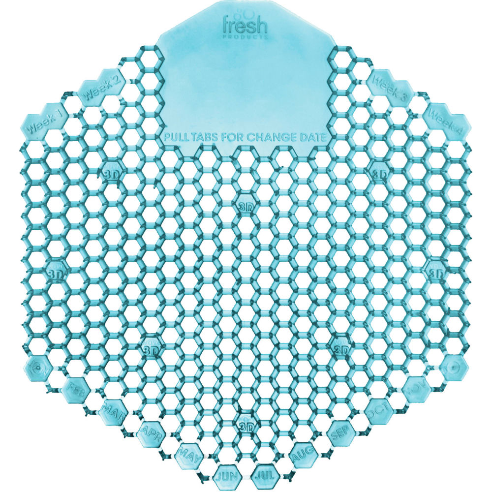 More freshness with ten times more fragrance for 30 days. Eliminates odors, reduces splash back and gradually releases fragrance, reducing cleaning time. Flexible, translucent vinyl screen allows full view of urinal drain to ensure optimal flow while trapping debris. Wave 3D. Deodorizer Type: Urinal Screen; Scent: Ocean Mist; Color(s): Blue.