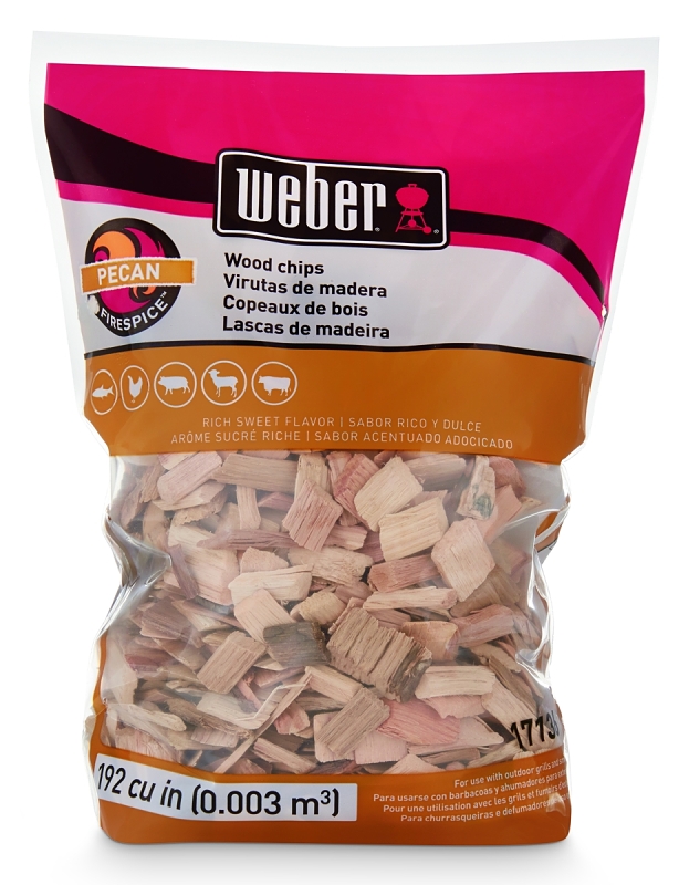 Weber Smoking Chips, 192 cu-in Net Content, Bag Container, Wood, Pecan Flavor, Suitable for: Beef, Fish, Lamb, Pork and Poultry