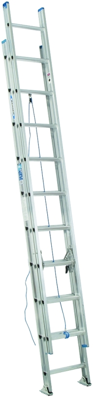 The D1320-2 aluminum 20 ft extension ladder has a duty rating of 250 lb and heavy-duty modified I-beam side rails. The TRACTION-TRED D-rungs are slip resistant and the side rails are interlocking. Heavy-duty, spring-loaded locks operate smoothly. Durable shoes rest flat or are held in spur position with SHU-LOK feature. Mar-resistant end caps help protect the surface ladder is leaning against. Exclusive ALFLO rung joint means TWIST-PROOF performance every time.