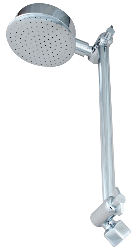 HI/LO pan head shower easily raises and lowers. 3-1/2 in pan head provides invigorating wide spray and for full body coverage. 20 in total swing pan swivels in every direction. Includes the Power Boost Advantage, a series of brass restrictors which allows you to easily adjust the flow rate and performance of your shower, ensuring a great shower even in low-pressure. Installs easily with standard 1/2 in female thread.