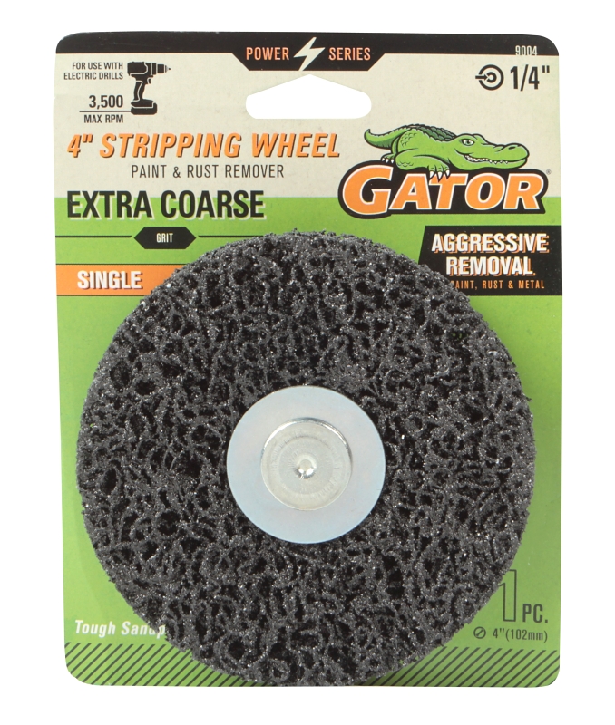 WHEEL STRIPPING P&R X-CRS 4IN SKU G031-09004 MPN 9004 Add to Cart Add Specifications Abrasive Material Silicon Carbide Applicable Materials Brick Cast Iron Fiberglass Metal Wood Arbor Size 1/4 in Diameter 4 in Grit Grade Extra Coarse Suitable for Angle Grinder Manufacturer GATORADE