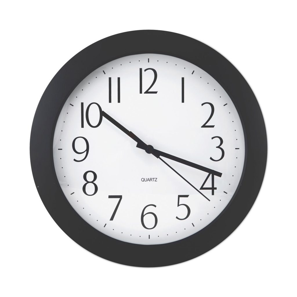 Whisper Quiet Clock, 12″ Overall Diameter, Black Case, 1 AA (sold separately)