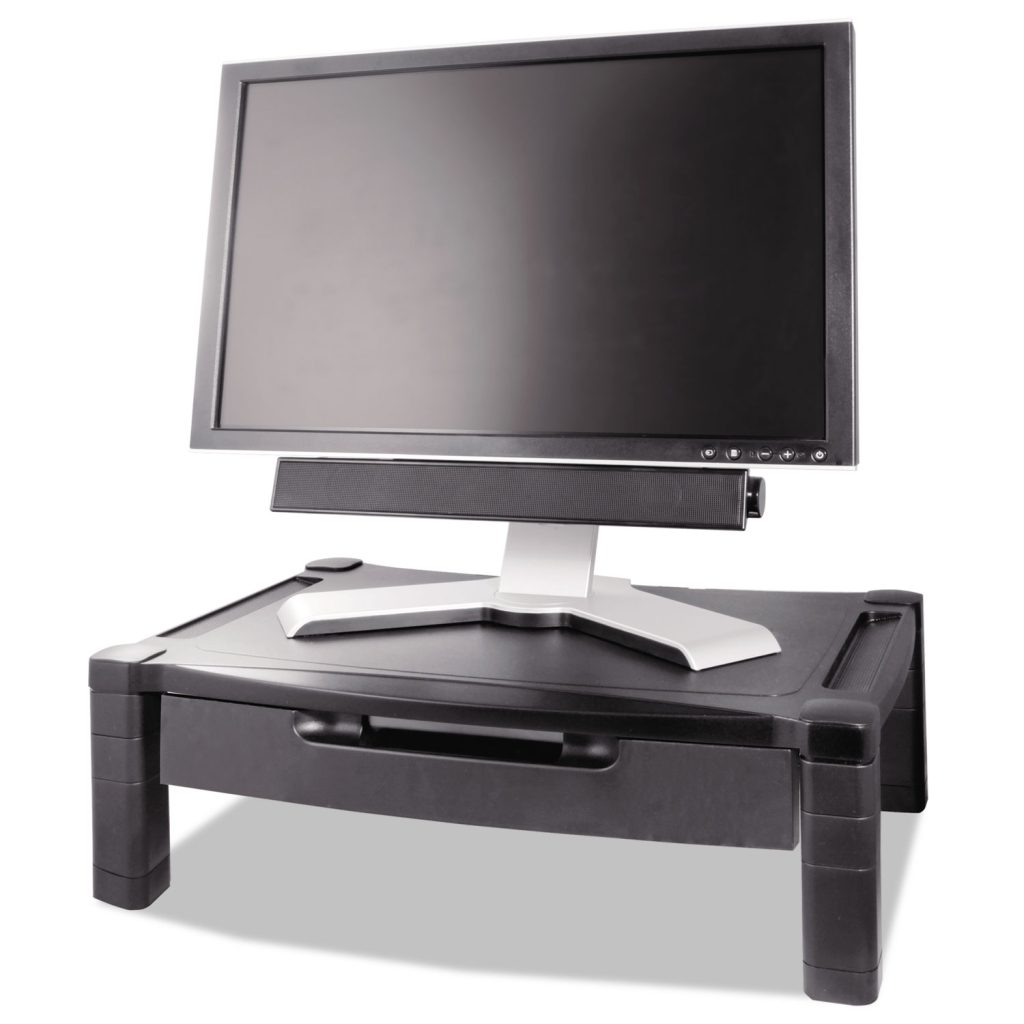Wide Deluxe Two-Level Monitor Stand with Drawer, 20″ x 13.25″ x 3″ to 6.5″, Black, Supports 50 lbs