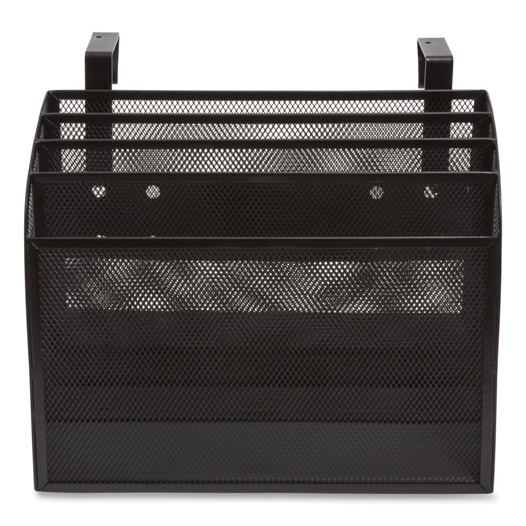 Reduce clutter and improve the overall appearance of your workspace. Inclined design and staggered openings accommodate paper pads, file folders, forms, documents and large-format envelopes. Tightly woven metal-mesh body and a sleek, flat-square frame with rounded edges deliver reliable performance with a contemporary, professional flair. Enclosed DesignVersatile placement options: hang over a cubicle wall or place directly on a worksurface. Number of Compartments: 4; For File Size: Letter; Load Orientation: Top; Color(s): Matte Black.