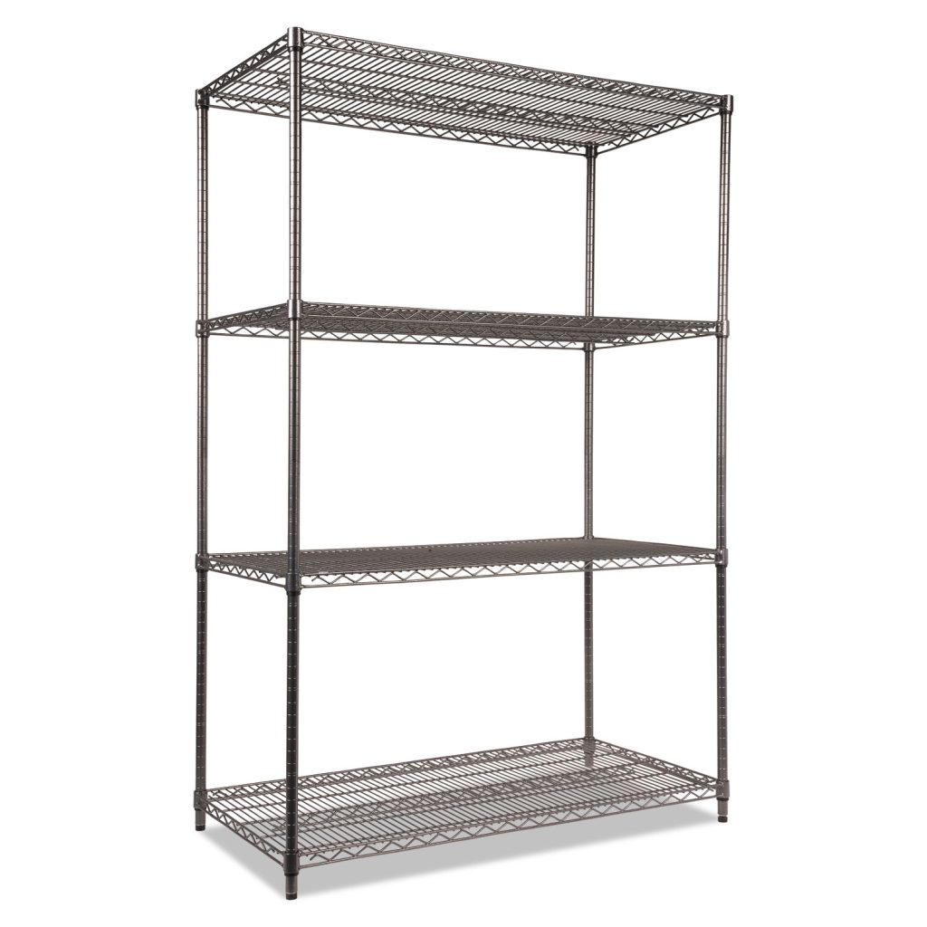 Ideal storage solution for commercial and restaurant use. Black Anthracite finish is National Sanitation Foundation (NSF) certified for wet and dry environments. Open design that allows for air circulation. Snap-together design assembles in minutes. Can be set up as a four-tier single rack or as two two-tier racks to meet specific needs. Up to 1,000 lbs. per shelf (evenly distributed). Color: Black Anthracite; Overall Width: 48″; Overall Depth: 24″; Overall Height: 72″.