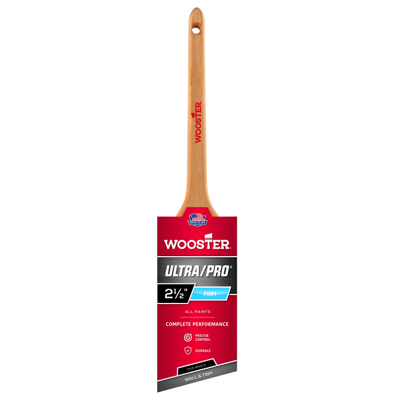Ultra-high production makes Ultra/Pro Firm the best-selling blend and a favorite for over 25 years. Featuring a mix of nylon and polyester, it’s truly an all-purpose professional brush for use in acrylics, latex or enamels, indoors and out. With fantastic coverage and masterful cut-in control, it saves painters time wherever a firm brush is needed. Look for the purple and sable brown filament and the maroon stamp on the handle.