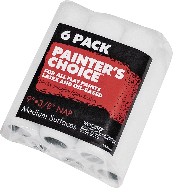 For all flat paints. Polypropylene core resists water, solvents and cracking. Mint green, knitted rollers offer good-quality fabric. Especially suited for DIY and maintenance jobs.