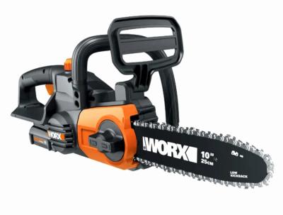 WORX WG322 Auto-Tension Chainsaw, 20 V Battery, 10 in L Bar/Chain, 3/8 in Bar/Chain Pitch, Black