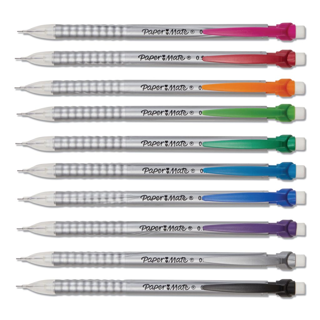 Write Bros Mechanical Pencil, 0.5 mm, HB (#2), Black Lead, Silver Barrel with Assorted Clip Colors,