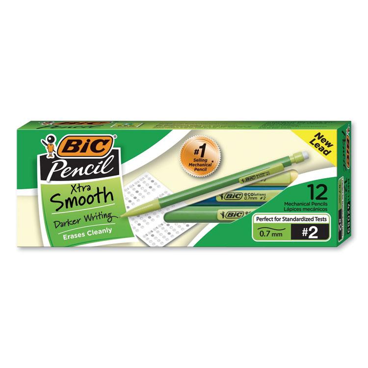 The smooth-writing lead does not smudge and erases cleanly while advancing quickly and easily. One BIC mechanical pencil equals two and a half woodcase pencils, giving you more for your money. Retractable (Yes/No): Yes; Eraser (Yes/No): Yes; Graphite Color(s): Black; Color Family: Black.