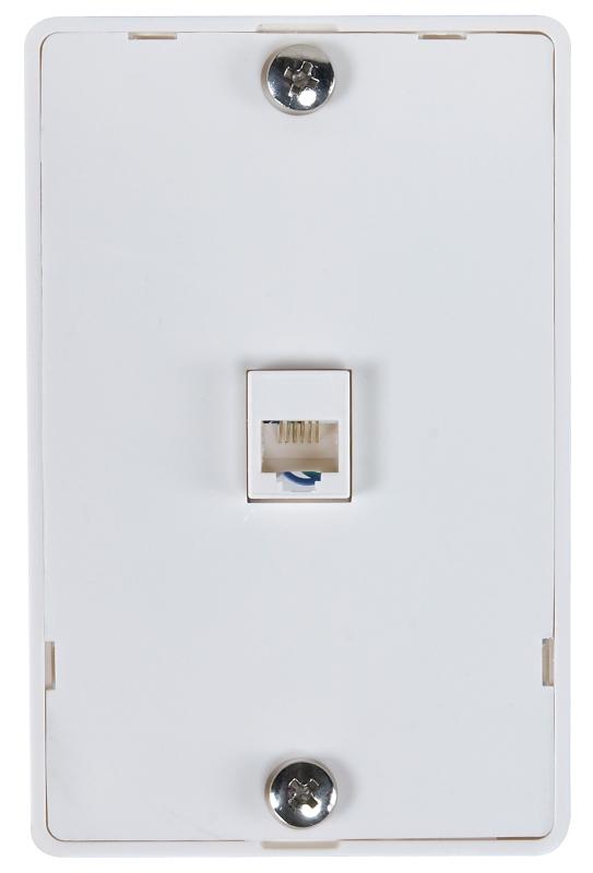 The Zenith universal wall phone jack with white finish is for surface mounting to a standard outlet box. The white trim provides a neutral cover for your spaces decor.