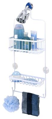 Organize your shower instantly with this easy to install, rust-resistant showerhead caddy. Provides storage for bottles, shower puffs, razors and more. Slip-proof collar and suction cups are included to secure caddy.