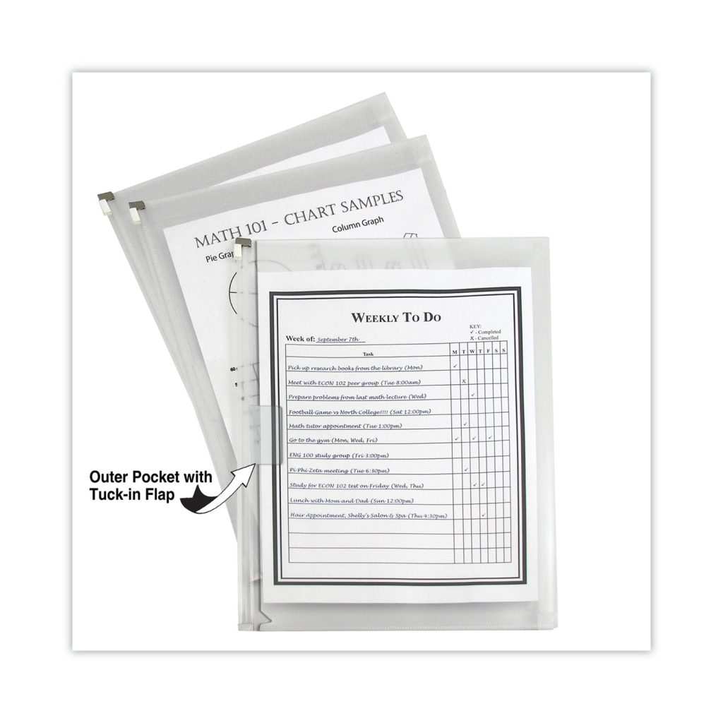 Zip ‘N Go Reusable Envelope with Outer Pocket, 1″ Capacity, 2 Sections, 10 x 13, Clear, 3/Pack